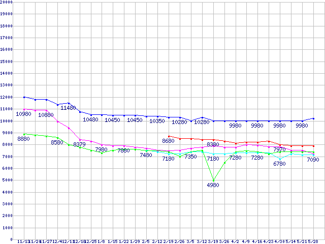 | ※製品名をクリックすると個別のグラフを表示します ※点線部は販売店が確認できなかった、または調査データがないことを示します | |