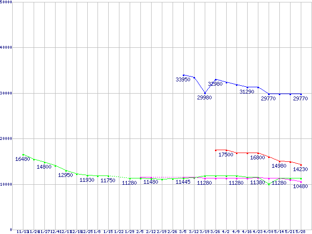 | ※製品名をクリックすると個別のグラフを表示します ※点線部は販売店が確認できなかった、または調査データがないことを示します | |