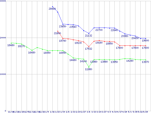 | Socket AM2 (HyperTransport 3.0,Quad Core)の最安値推移 |