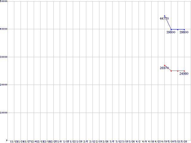 | FALCON (SSD,3Gb/s,2.5インチ,リード230MB/s・ライト190MB/s)の最安値推移 |