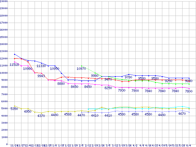 | ※製品名をクリックすると個別のグラフを表示します ※点線部は販売店が確認できなかった、または調査データがないことを示します | |