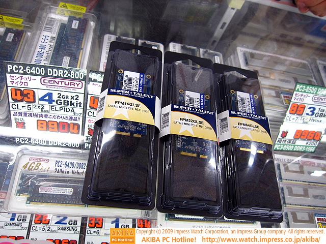 ![]() | AKIBA PC Hotline! 2009年6月6日号 ネットブック向けSSDの高速版登場、リード150MB/sなど 今週見つけた新製品:ハードディスク Super Talent FPM16GLSE Super Talent FPM32GLSE Super Talent FPM64GLSE |