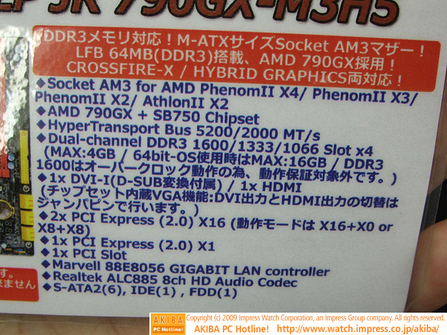 AKIBA PC Hotline! 2009年6月6日号Socket AM3初のmicroATXマザーが登場今週見つけた新製品:Socket AM3マザーボード DFI LANPARTY JR 790GX-M3H5前の画像←→次の画像