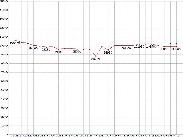 | CPU主要製品(最安値6万円以上)の最安値推移 |