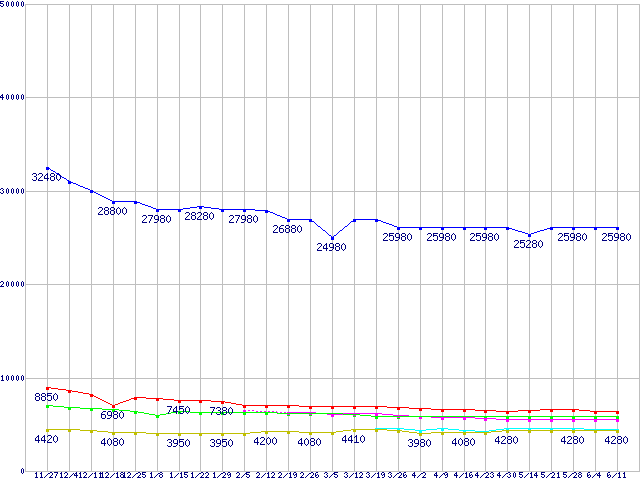 | ※製品名をクリックすると個別のグラフを表示します ※点線部は販売店が確認できなかった、または調査データがないことを示します | |