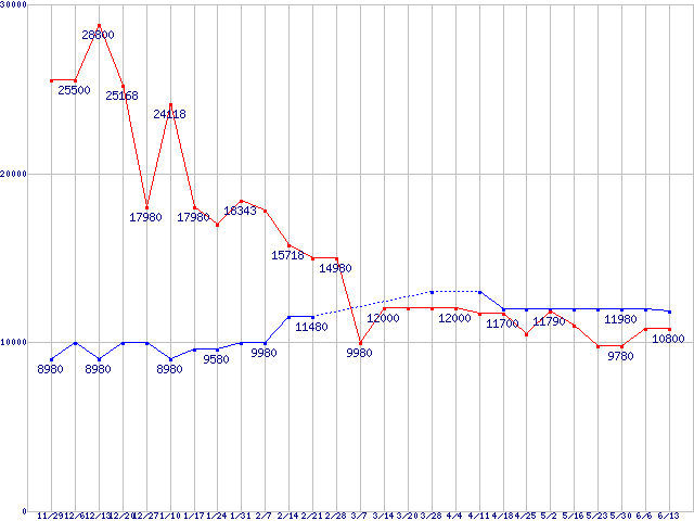 | ※製品名をクリックすると個別のグラフを表示します ※点線部は販売店が確認できなかった、または調査データがないことを示します |