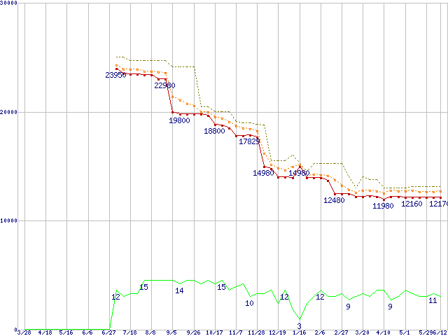 | Phenom X4 9350e (2.0GHz,L2 512KB×4,L3 2MB)の価格推移 |