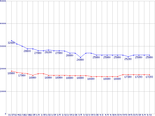 | WD VelociRaptor (10000rpm,3Gb/s,16MB)の最安値推移 |