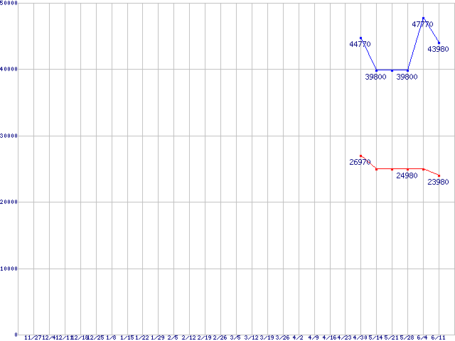 | FALCON (SSD,3Gb/s,2.5インチ,リード230MB/s・ライト190MB/s)の最安値推移 |