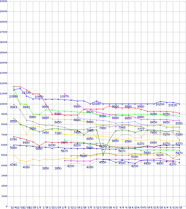 | HDD/SSD主要製品(最安値1万円未満)の最安値推移 |