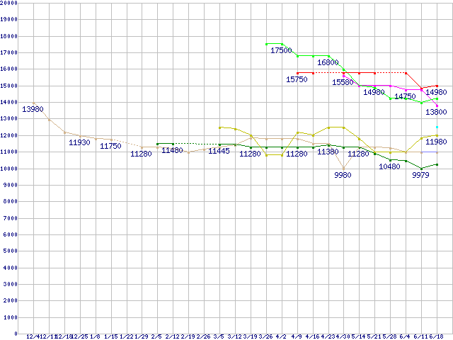 | ※製品名をクリックすると個別のグラフを表示します ※点線部は販売店が確認できなかった、または調査データがないことを示します | |