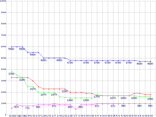 | ※製品名をクリックすると個別のグラフを表示します ※点線部は販売店が確認できなかった、または調査データがないことを示します | |