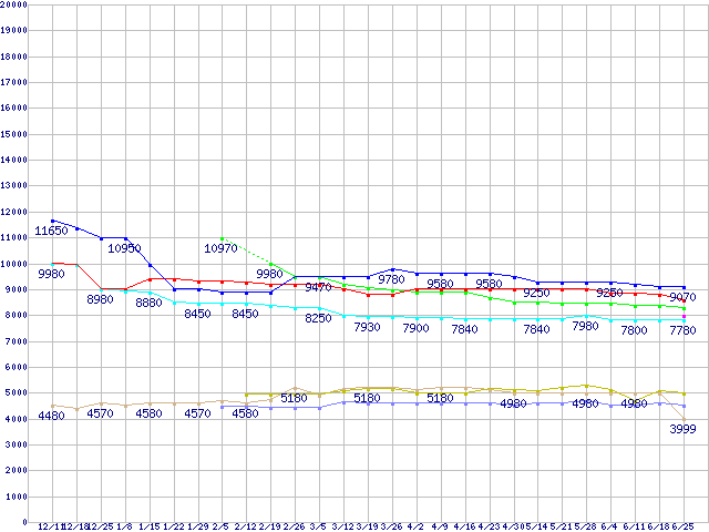 | ※製品名をクリックすると個別のグラフを表示します ※点線部は販売店が確認できなかった、または調査データがないことを示します | |