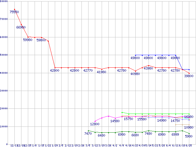 | ※製品名をクリックすると個別のグラフを表示します ※点線部は販売店が確認できなかった、または調査データがないことを示します | |