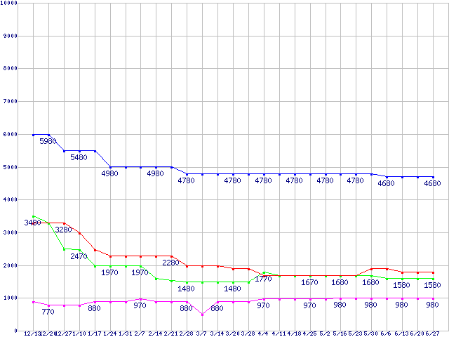 1GBモジュールの最安値推移