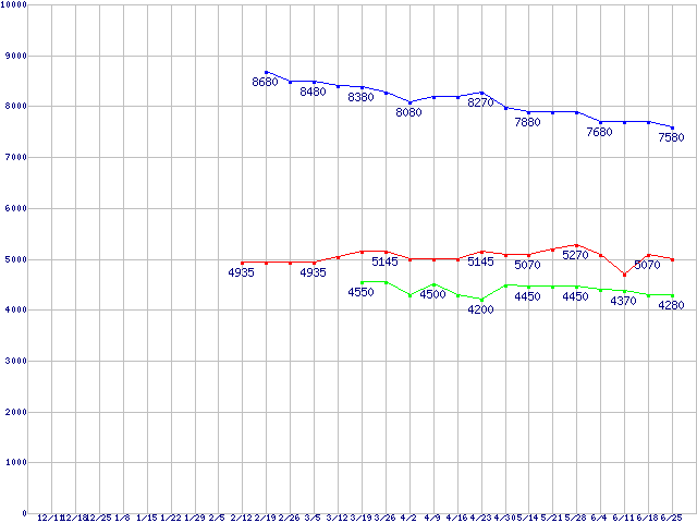| Barracuda 7200.12 (7200rpm,3Gb/s)の最安値推移 |