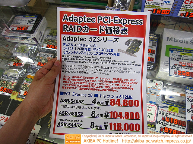 AKIBA PC Hotline! 2009年7月4日号キャパシタ+フラッシュメモリで停電対策するRAIDカード発売今週見つけた新製品:そのほかの拡張カード Adaptec ASR-5405Z前の画像←[記事に戻る]