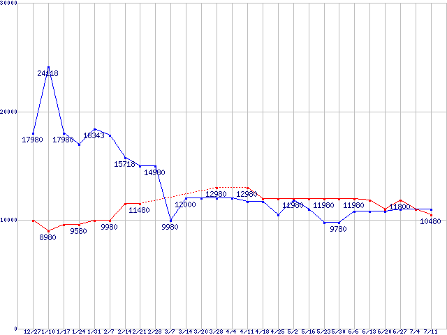 | ※製品名をクリックすると個別のグラフを表示します ※点線部は販売店が確認できなかった、または調査データがないことを示します |