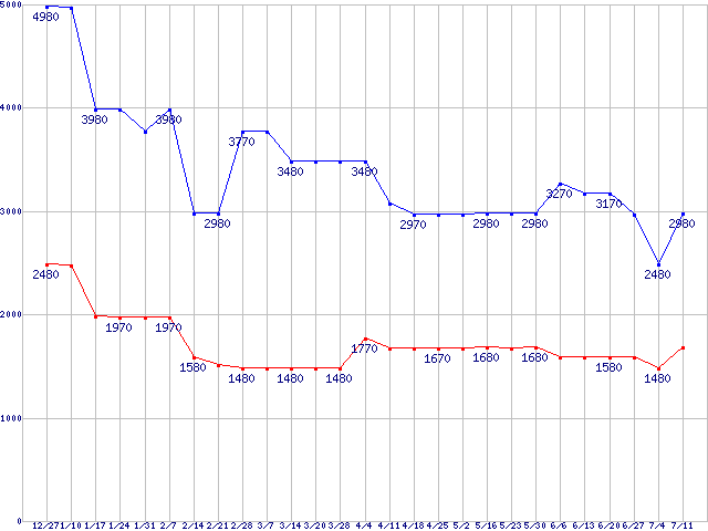 | PC3-8500(DDR3-1066) DDR3 SDRAM DIMMの最安値推移 |