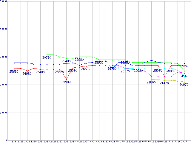 | CPU主要製品(最安値2万円〜3万円未満)の最安値推移 |