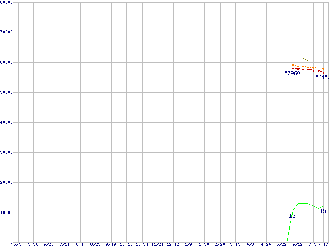 Core i7-950 (3.06GHz)の価格推移↑前グラフ↓次グラフ(2008年5月9日〜2009年7月17日)※このグラフは過去のデータも税率5%相当に調整した税込み相当額のグラフです。 税率変更や、総額表示方式導入(2004年4月)の影響は除いています。●関連グラフCPU主要製品の最安値推移CPU主要製品(最安値3万円〜6万円未満)の最安値推移Intel系CPUの最安値推移LGA1366 (QPI 4.8GT/s,L3キャッシュ8MB,Quad Core,Hyper-Threading)の最安値推移●凡例最安値(点線部は販売店未確認または未調査)平均値最高値ショップ数