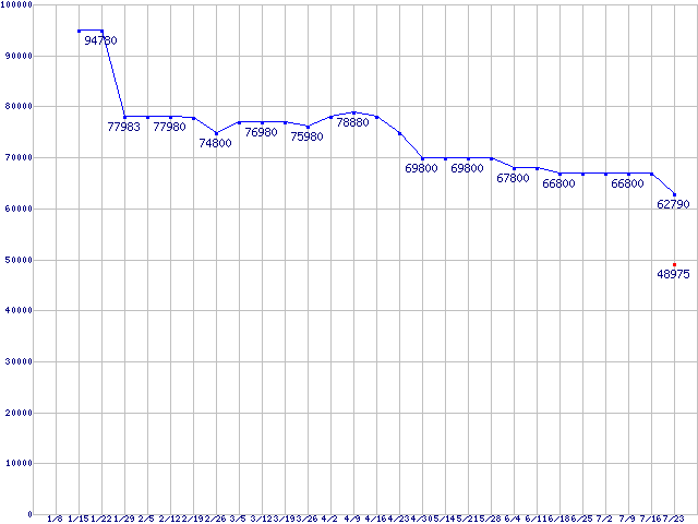| HDD 160〜200GB未満の最安値推移 |