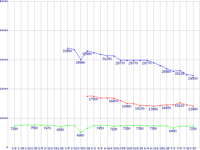 | WD Caviar Green (3Gb/s)の最安値推移 |