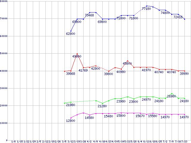 | ※製品名をクリックすると個別のグラフを表示します ※点線部は販売店が確認できなかった、または調査データがないことを示します | |