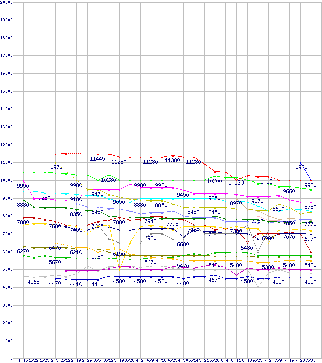 | HDD/SSD主要製品(最安値1万円未満)の最安値推移 |