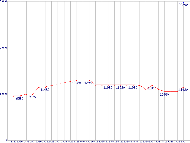| メモリ主要製品(最安値1万円以上)の最安値推移 |