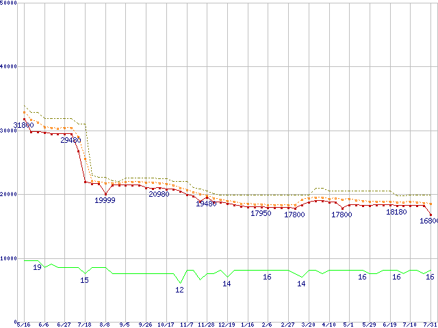 | Core 2 Duo E8500 (3.16GHz,L2 6MB)の価格推移 |
