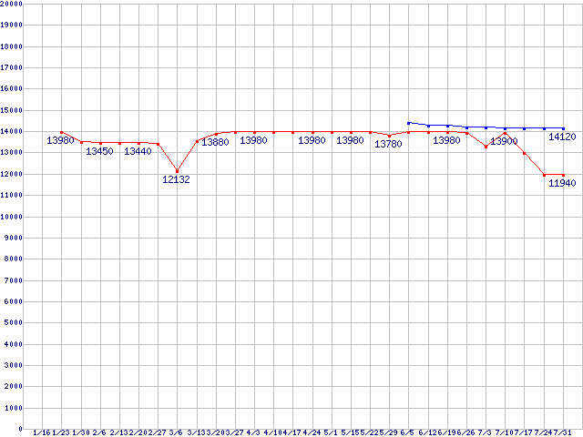 | LGA775 (FSB 1066MHz,Dual Core,TDP 65W)の最安値推移 |