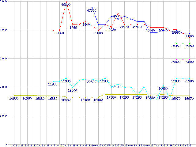 | ※製品名をクリックすると個別のグラフを表示します ※点線部は販売店が確認できなかった、または調査データがないことを示します | |