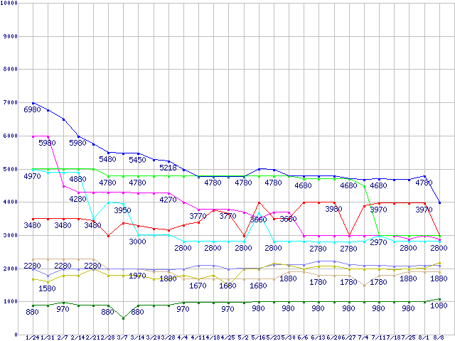 | ※製品名をクリックすると個別のグラフを表示します ※点線部は販売店が確認できなかった、または調査データがないことを示します | |
