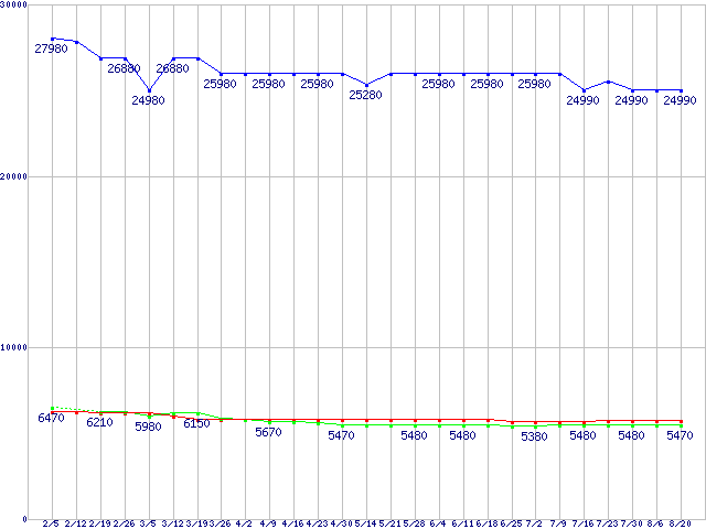 | ※製品名をクリックすると個別のグラフを表示します ※点線部は販売店が確認できなかった、または調査データがないことを示します | |