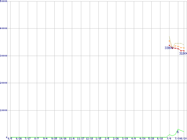 WD2002FYPS (2TB,64MB)の価格推移↑前グラフ↓次グラフ(2008年6月5日〜2009年8月20日)※このグラフは過去のデータも税率5%相当に調整した税込み相当額のグラフです。 税率変更や、総額表示方式導入(2004年4月)の影響は除いています。●関連グラフHDD/SSD主要製品の最安値推移HDD/SSD主要製品(最安値2万円以上)の最安値推移HDD 1.5TB以上の最安値推移WD RE4-GP (3Gb/s,64MB)の最安値推移●凡例最安値(点線部は販売店未確認または未調査)平均値最高値ショップ数