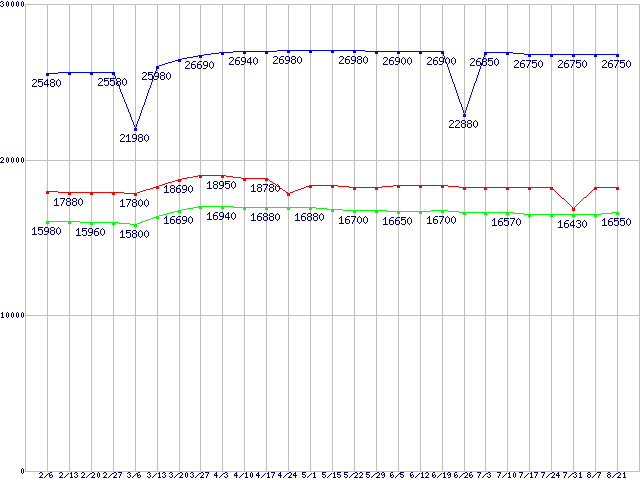 | LGA775 (FSB 1333MHz,Dual Core,TDP 65W)の最安値推移 |