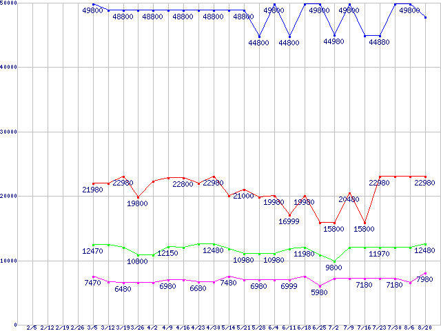 | ※製品名をクリックすると個別のグラフを表示します ※点線部は販売店が確認できなかった、または調査データがないことを示します | |