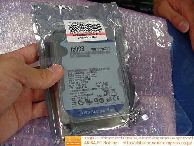 AKIBA PC Hotline! 2009年8月22日号750GBの2.5インチHDDが発売、12.5mm厚今週見つけた新製品:ハードディスク WesternDigital WD7500KEVT[記事に戻る]→次の画像