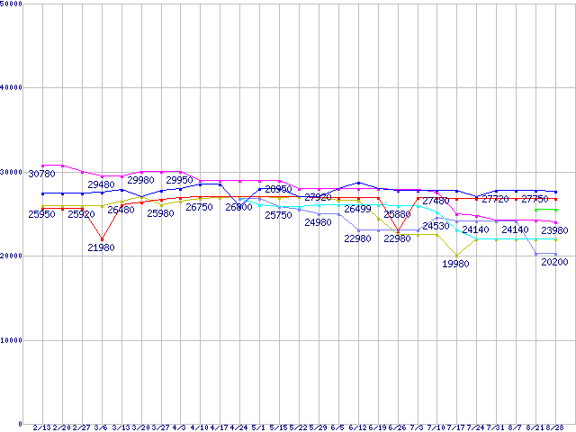 | CPU主要製品(最安値2万円〜3万円未満)の最安値推移 |