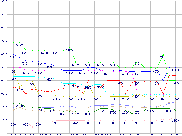 | ※製品名をクリックすると個別のグラフを表示します ※点線部は販売店が確認できなかった、または調査データがないことを示します | |