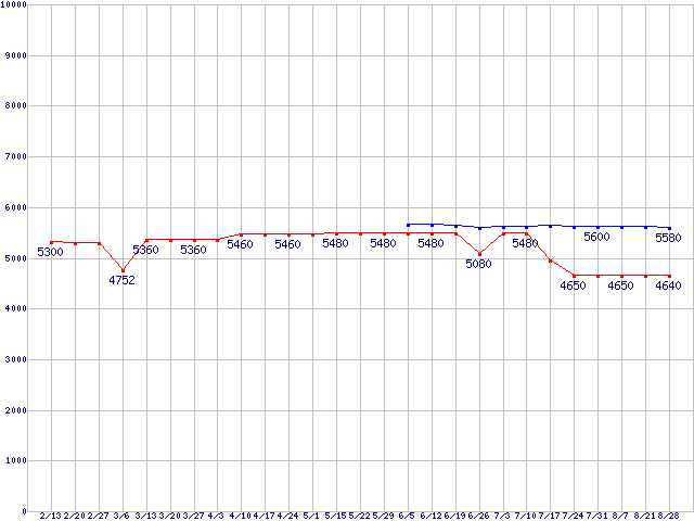 | LGA775 (FSB 800MHz,L2 512KB,Dual Core)の最安値推移 |