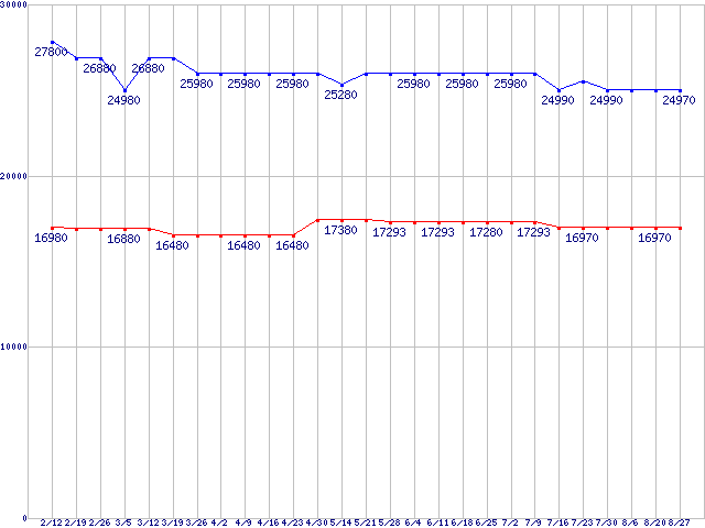 | WD VelociRaptor (10000rpm,3Gb/s,16MB)の最安値推移 |