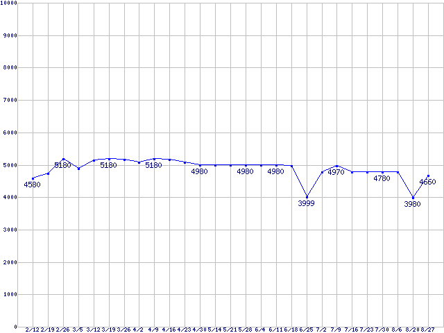 | Deskstar P7K500 (7200rpm,3Gb/s)の最安値推移 |