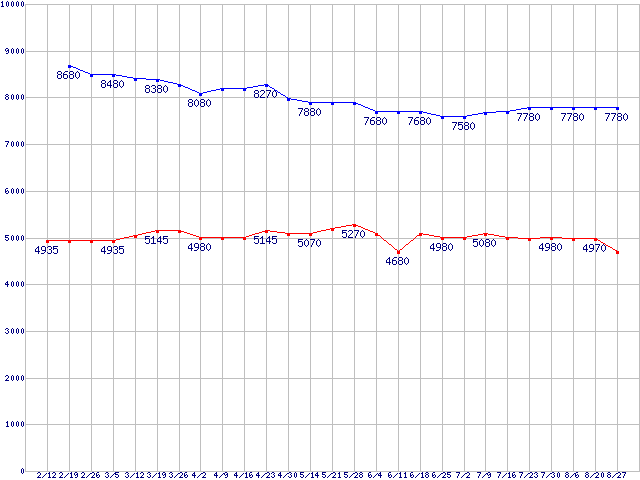 | Barracuda 7200.12 (7200rpm,3Gb/s)の最安値推移 |