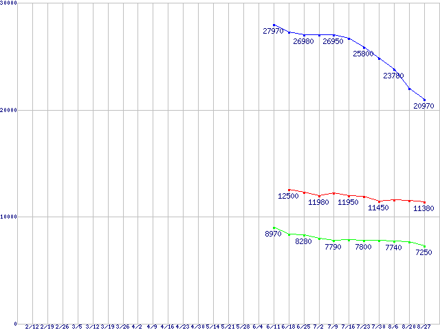 | Barracuda LP (5900rpm,3Gb/s)の最安値推移 |
