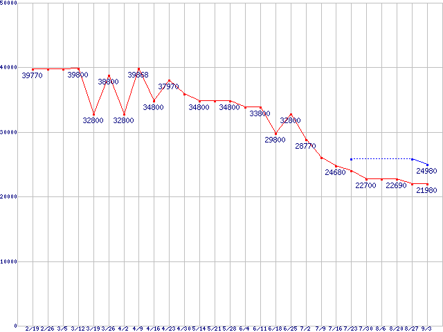 | ※製品名をクリックすると個別のグラフを表示します ※点線部は販売店が確認できなかった、または調査データがないことを示します |