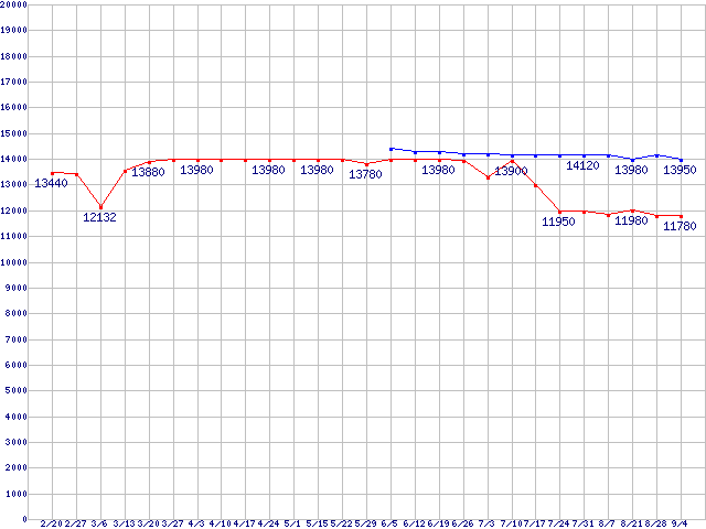 | LGA775 (FSB 1066MHz,Dual Core,TDP 65W)の最安値推移 |