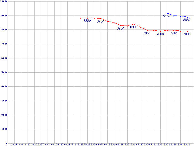 | ※製品名をクリックすると個別のグラフを表示します ※点線部は販売店が確認できなかった、または調査データがないことを示します |