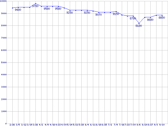 | Momentus 5400.6 (5400rpm,3Gb/s,2.5インチ)の最安値推移 |